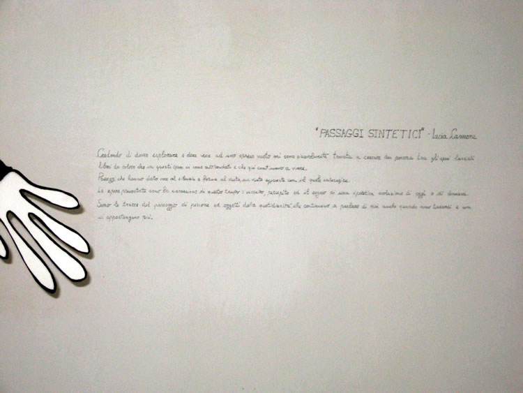 "Credendo di dover esplorare e dare voce ad uno spazio vuoto mi sono piacevolmente trovata a cercare dei percorsi tra gli spazi lasciati liberi da coloro che in questo luogo si sono avvicendati e che qui continuano a vivere. Passaggi che hanno dato voce al silenzio e forma al vuoto, un vuoto apparente con il quale interagire".